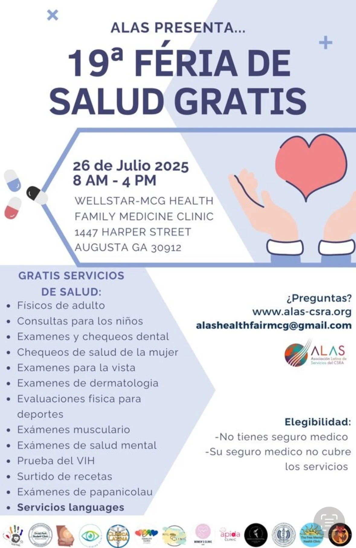 Our FREE Health Fair 2022 this year will provide various services and doctors. For more information please visit our Facebook page or call us at 706.940.ALAS